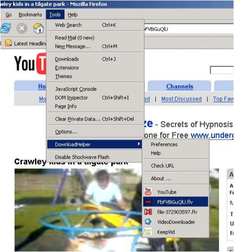 Ví dụ, nếu bạn đi đến một trang YouTube, bạn sẽ có thể tải video trực tiếp trên hệ thống tập tin của bạn. Nó cũng làm việc với MySpace DreamHost Google video, DailyMotion, Porkolt, iFilm, và những người khác.
