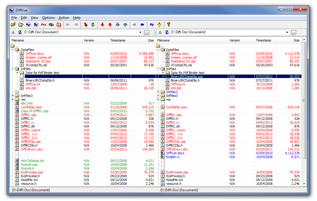 3. Hiển thị các tập tin văn bản side-by-side với những thay đổi nổi bật