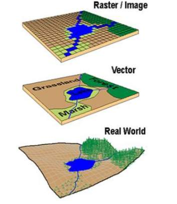 Dữ liệu raster được biểu diễn dưới dạng ma trận hay lưới mà có những hàng và cột. Mỗi giao điểm của hàng và cột tạo thành 1 pixel. Mỗi ô có 1 giá trị ví dụ như mức độ màu.
