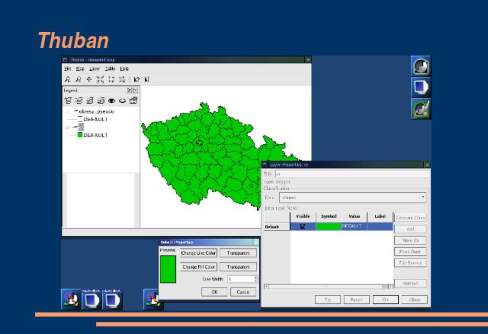+ Thuban là chương trình cho thấy sự tác động lẫn nhau giữa các dữ liệu địa lý, nó được tạo ra vì chưa có phần mềm nào trước đó cho thấy sự tương tác giữa các dữ liệu địa lý mà thuộc về mã nguồn mở. Thuban là một ứng dụng hiển thị GIS bằng ngôn ngữ Python, sử dụng công cụ. WxWindows để lập trình giao diện. Trong thuban các layer bao gồm: Line, Polygon, Point, Georeferenced Image