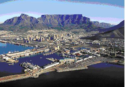 Đỉnh núi bằng phẳng như một cái bàn rất lớn. Núi Bàn ở ngoài khơi Cape Town (mỏm tận cùng của Nam Phi). Có rất nhiều con đường với nhiều cảnh đẹp dẫn lên mặt bàn khổng lồ trên cao 1.086 m, nhưng du khách vẫn thường đến đây bằng cáp treo trong vài phút.