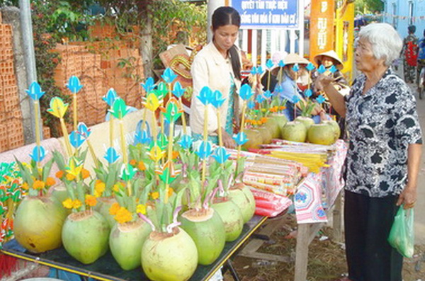 Chị em phụ nữ theo sau người mang chiếc mâm ra đồng, dâng cúng đất đai, ruộng vườn, cúng những vị thần bảo hộ, cầu mong mưa thuận gió hòa, mùa màng bội thu, no ấm. Sau đó họ rải hạt giống, rắc tro, chân nhang lên cánh đồng, bờ ruộng. Riêng những bình bông bằng trái dừa, một số bà con xin về cho con cháu uống mong bình an mạnh khỏe, học hành thông minh. Xem bài gốc tại đây |