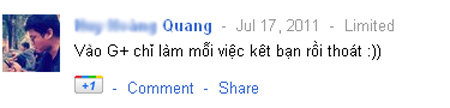 Tuy nhiên, dễ dàng nhận thấy đa số những người có thể truy cập và thường xuyên vào Facebook thì hiện không còn mấy khi lui tới tài khoản Google+ nữa. Một lí do khác khiến họ nản lòng là Google vẫn chưa mở cửa dịch vụ và phải có thư mời mới có thể đăng kí tài khoản. Hơn nữa, chính sách "ép" sử dụng tên thật đã làm những ai thích dùng nick ảo cảm thấy khó chịu và không muốn tiếp tục tham gia.
