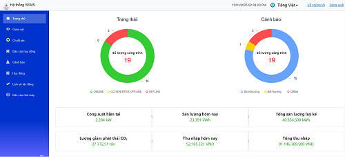 - Giám sát và cảnh báo theo thời gian thực: SEMS cung cấp dữ liệu tức thời về hiệu suất hệ thống, đồng thời đưa ra cảnh báo kịp thời khi phát hiện bất thường.