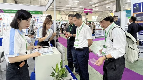 Các đại biểu tham quan các gian hàng trưng bày tại Analytica Hanoi 2026.