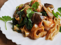 Món ăn thật hấp dẫn, ngon miệng bởi vị ngọt của tôm, độ dai của sợi hủ tiếu và giòn mát của rau cải chíp...