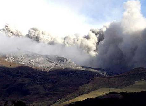 | Núi lửa Galeras ở Colombia. Núi lửa này ở độ cao hơn 4.000m trên mực nước biển. Núi đã phun trào làm ít nhất 9 người thiệt mạng năm 1993, ngay khi một toán khoa học gia đang khảo sát miệng núi lửa. |