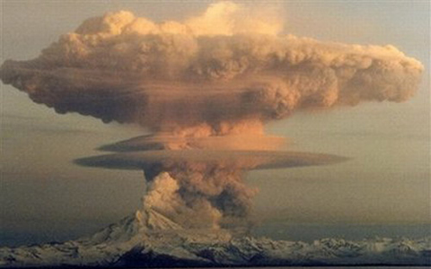 | Núi lửa Redoubt ở bang Alaska, Mỹ phun trào trông như nổ bom nguyên tử. Ngọn núi cao hơn 3 km. |