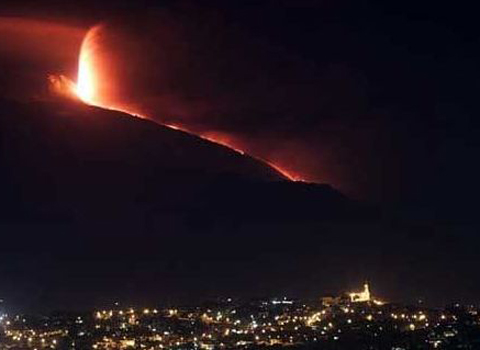 | Núi lửa Etna trên đảo Sicily ở miền Nam Italy. Etna cao khoảng 3.340m, là núi lửa đang hoạt động cao nhất ở Italy và lớn nhất châu Âu. Kể từ năm 1.500 trước công nguyên đến nay, núi lửa Etna đã phun trào khoảng 200 lần với dòng dung nham lan ra vài km tới thị trấn Nicolosi gần đó. Theo truyền thuyết, người Hy Lạp cổ đại cho rằng Etna là nhà của thần lửa Vulca. Khi núi lửa phun trào thì đó là lúc thần Vulca đang rèn binh khí cho thần chiến tranh Mars. |