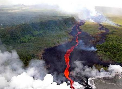 | Ngọn núi lửa Piton de la Fournaise ở Madagascar. Đây là một trong những ngọn núi hoạt động mạnh nhất thế giới. |