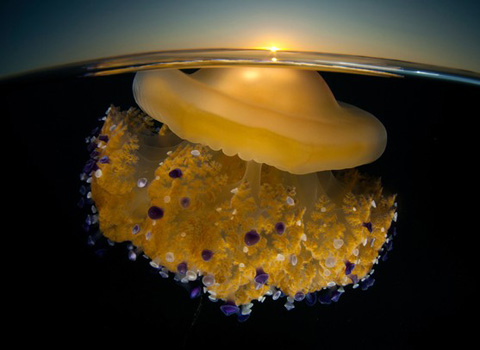 | Bức ảnh sứa biển Cotylorhiza bơi dưới mặt nước ở ngoài khơi Murcia, Tây Ban Nha. Bức ảnh do nhiếp ảnh gia Angel Fitor chụp. |