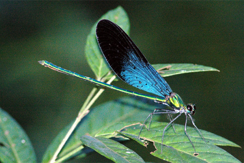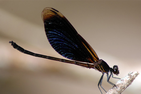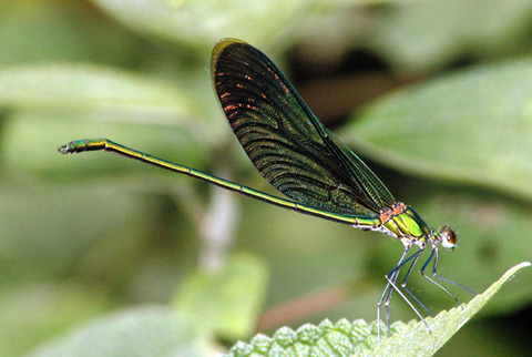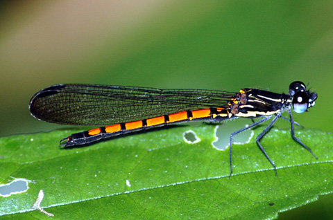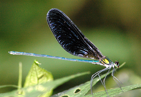 | Loài Euphaea masoni Selys, 1879 thuộc họ Euphaeidae khá phổ biến ở các vùng núi, với đôi cánh chắc khỏe màu xanh đen, mặt ngoài của đôi cánh sau có một mảng màu xanh óng ánh, mép trong có màu đỏ, phân biệt với loài Euphaea guerini Rambur, 1842 có hình dạng và màu sắc cơ thể tương tự, nhưng mép trong cánh sau màu xanh. |