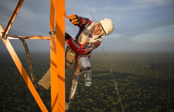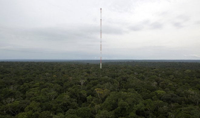 Tháp quan sát được xây dựng trong rừng mưa Amazon, cách thành phố Manaus, Brazil, khoảng 160 km. Tháp cao 335 m và có màu vàng cam sáng, nổi bật giữa những tán rừng phủ xanh dưới mặt đất.