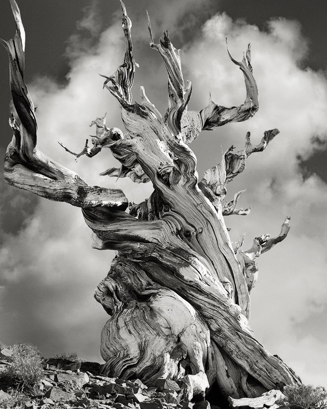 Mọc trên một sườn núi trắng thuộc dãy White Mountains, bang California, Mỹ, cây thông Bristlecone khoảng hơn 4.000 năm tuổi.