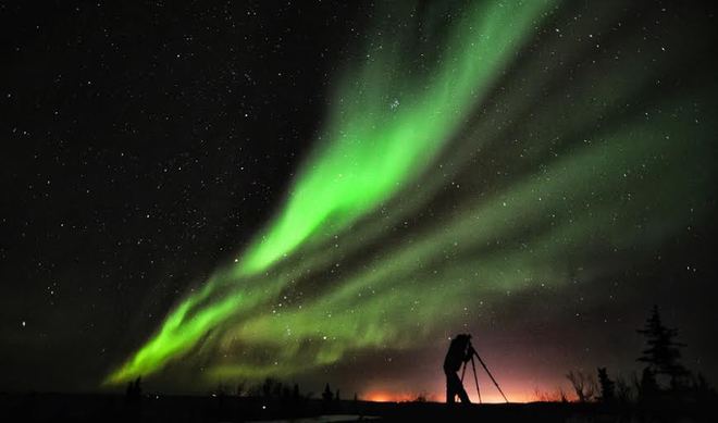 Bức ảnh này thuộc chủ đề "Hoạt động khoa học", nói về một nhà nghiên cứu đi thực địa, chụp cực quang ở bang Alaska, Mỹ do Christopher Morse chụp.