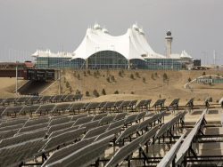 Các tấm pin mặt trời được lắp đặt tại sân bay quốc tế Denver, có khả năng cung cấp khoảng 6% lượng điện tiêu thụ .