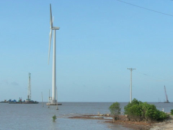 Vượt qua điều kiện thời tiết khắc nghiệt và phụ thuộc thủy triều, nhóm kỹ sư cùng hàng trăm công nhân lắp đặt thành công 10 tua bin điện gió đầu tiên trên biển ở miền Tây.