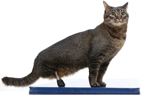 Cấy ghép chân hợp kim titan giúp mèo tàn tật có thể đi lại