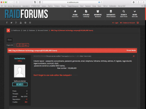 163 triệu tài khoản Zing ID bị rao bán trên diễn đàn nước ngoài, VNG nói khách hàng vẫn an toàn