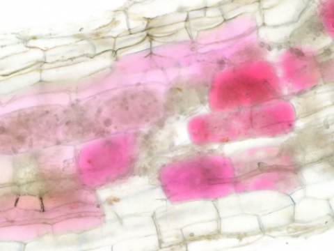 Rễ cây được biến đổi chuyển sang màu đỏ khi nấm hữu ích xuất hiện