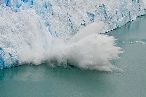 Do không còn chỗ thoát nước, mực nước ở một bên hồ dâng cao đến 30m, tạo áp lực khổng lồ, làm nứt và sập hàng rào chắn bằng băng, tạo nên cảnh tượng sập núi băng hết sức ngoạn mục.
