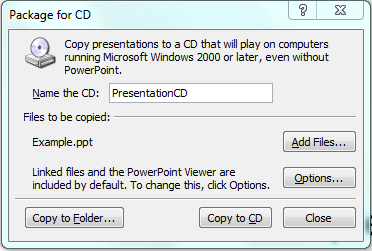 -  Nếu bạn đang sao chép trình bày của bạn vào một đĩa CD, kích Copy to CD.