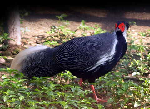 | Gà lôi trắng Lophura nycthemera. Nơi ở thích hợp là trong rừng thường xanh ở dạng nguyên sinh và thứ sinh có độ cao từ 500m trở lên. Các nhà khoa học và nông dân đã gặp chúng ở độ cao 500 - 1000 m, thậm chí trên các đỉnh núi cao 1200 - 1800m. Chúng kiếm ăn trên mặt đất và ban đên ngủ trên cây. (Ảnh: Phùng Mỹ Trung) |