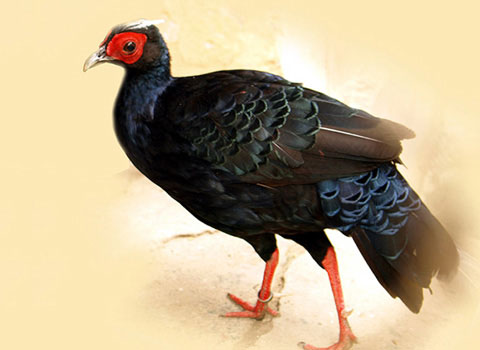 | Gà lôi lam mào trắng Lophura edwardsi. Chim đực trưởng thành nhìn chung có màu xanh lam thẫm. Mào lông ở trên đỉnh đầu màu trắng. Mắt màu đỏ da cam. Mỏ lục vàng nhạt hay màu sừng. Chân đỏ tía. Lần đầu tiên được phát hiện trên vùng rừng rậm quanh núi đá vôi giữa tỉnh Quảng Bình và Quảng Trị của miền Trung bộ của Việt Nam trên độ cao 50 - 200m của rừng thứ sinh. Đây là loài được đưa vào Sách đỏ Việt Nam. (Ảnh: Phùng Mỹ Trung) |