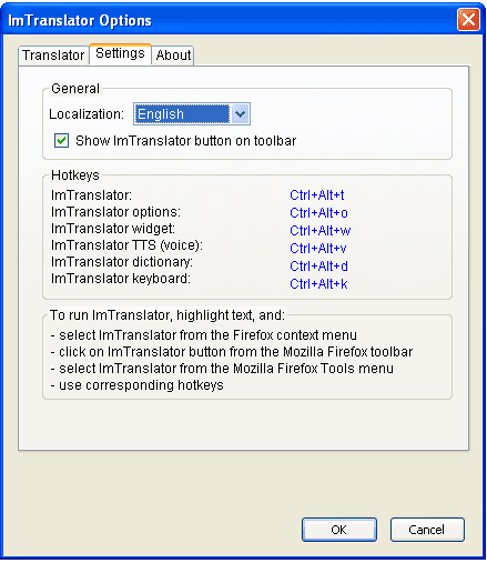 ImTranslator tùy chọn có sẵn cho ImTranslator add-on chỉ cho Mozilla Firefox.