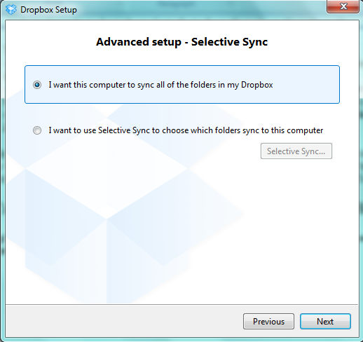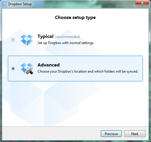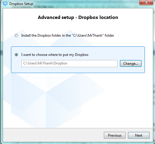 Chọn nơi đặt thư mục Dropbox của bạn.
