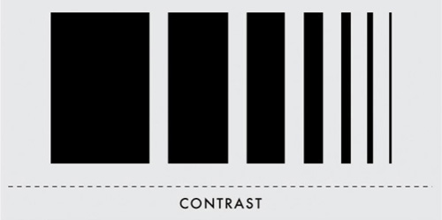 Là sự so sánh giữa các đối tượng có sự tương phản về: Mầu sắc (nóng – lạnh). Hình khối (to-nhỏ, méo-tròn, thẳng-zic zắc, đặc-rỗng), Chất liệu (nhẵn-xù xì…), Nhịp điệu (nhanh-chậm, ngắn-dài)