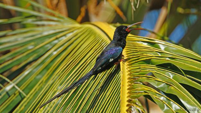 Chim rẽ quạt xanh sống ở vùng nhiệt đới châu Phi, cũng có mùi hôi giống trứng thối ở đuôi dùng để đe dọa kẻ thù. Loài chim có thể phun dịch giống như phân lỏng vào kẻ thù khi bị tấn công từ khoảng cách 60 cm.