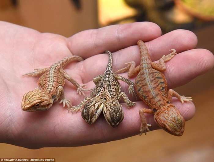 Rồng úc hai đầu nằm trên tay ông Evans cùng với 2 anh chị em với nó.