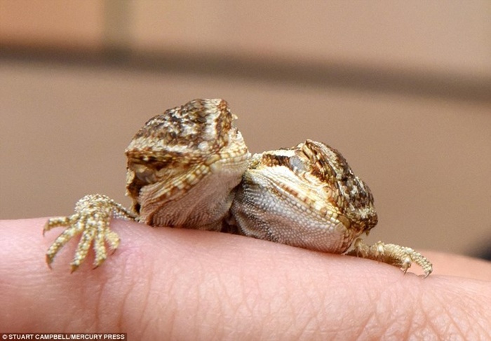 Ông Stephen Evans, một người dân giống thằn lằn tại thành phố Birkenhead của Anh đã nghĩ rằng hai chú rồng úc con sinh ra từ một quả trứng khi ông kiểm tra lò ấp. Nhưng ông vô cùng ngạc nhiên khi thấy đó là một con rồng úc hai đầu.