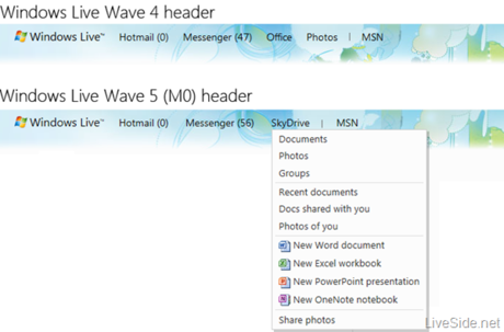 Ngoài tính năng mới trên, Windows Live cũng có một số thay đổi nhỏ ở phần đầu trang. Lúc trước phần đầu trang có bốn mục: Hotmail, Messenger, Office, Photos. Hiện giờ chỉ còn ba mục là Hotmail, Messenger và Skydrive, mục Office và Photos đã được gộp vào Skydrive. Điều này cho thấy Microsoft đang muốn người dùng chú trọng hơn vào Skydrive vì nó là nơi tập hợp của cả Office và Photos. Ngoài ra, cũng có thể Microsoft đang làm cho phiên bản web của Windows Live đồng bộ với Windows Phone vì trên Windows Phone, mọi tài liệu, hình ảnh đều quy về một mối là Skydrive.