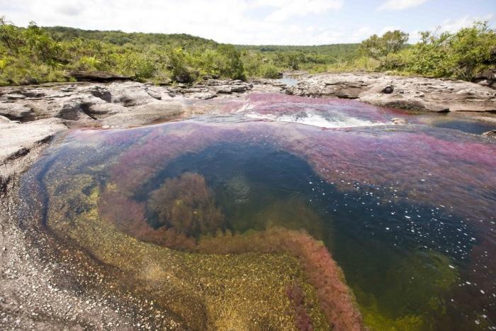 Bình thường, Cano Cristales nhìn giống hệt các dòng sông khác, với nước trong vắt như thủy tinh chảy qua các phiến đá phủ tảo và cây xanh, nhưng đến một khoảng thời gian ngắn mỗi năm, sự chuyển biến kỳ diệu này lại xảy ra.
