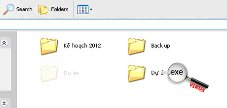 File thực thi vi rút cố tình sử dụng biểu tượng thư mục để đánh lừa người dùng.