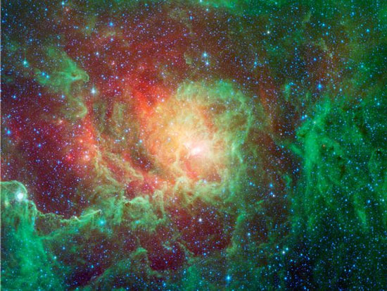Khí và bụi phát sáng xung quanh những ngôi sao mới trong tinh vân Lagoon.