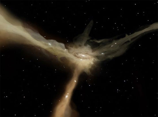 Hình minh họa sự hình thành của một ngôi sao từ vật chất trong vũ trụ.