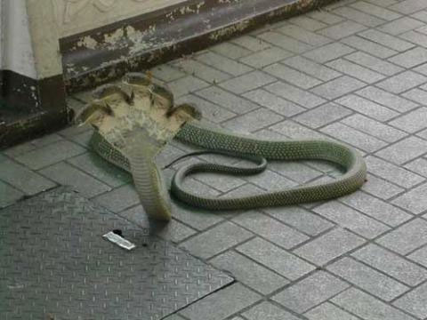 Một con rắn có tới 5 đầu vừa được phát hiện ở gần ngôi đền Kukke Subramanya, làng Subramanya, thuộc Karnataka (Ấn Độ).