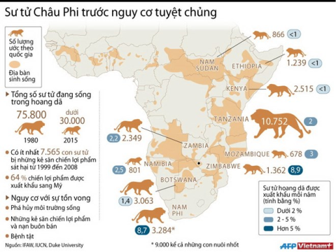 Số lượng sư tử trên toàn thế giới đã giảm 43% trong 2 thập kỷ trở lại đây do mất đi môi trường sống, thiếu nguồn thực phẩm và xung đột với dân số con người đang ngày một mở rộng.