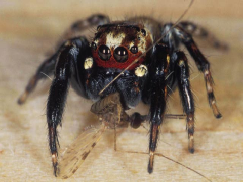 Hiện có 2 loài nhện nhảy chuyên săn bắt muỗi và một trong số chúng đặc biệt "nghiện" những con muỗi cái hút no căng máu người. Các loài khắc tinh đối với muỗi này có thể là đồng minh tự nhiên của con người trong cuộc chiến chống bệnh sốt rét.