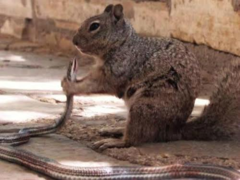 Bộ Nội vụ Mỹ chia sẻ cảnh tượng hiếm gặp về một con sóc đá ăn thịt rắn trong công viên quốc gia bang Texas.