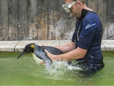 Con chim cánh cụt vua Charlotte mắc chứng sợ nước và đang phải tập bơi.