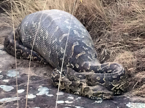 Tại khu bảo tồn Eland Game Hồ Nam Phi, người ta phát hiện một con trăn khổng lồ châu Phi chết bất thường, bụng phình to vì nuốt phải một con nhím. Lông nhím đã đâm thủng bụng kẻ săn mồi.