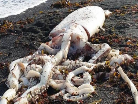 Một con mực lớn với tổng chiều dài tới 7 mét, vốn sống dưới biển sâu, được phát hiện trôi dạt trên bờ biển Kaikoura của New Zealand.
